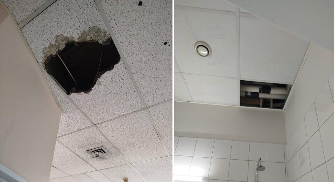 Συμπληρώνουν ότι «πτώσεις τμημάτων της οροφής είχαμε σε έξι διαφορετικούς χώρους στο Θριάσιο νοσοκομείο, το προηγούμενο διάστημα, χωρίς να έχει δοθεί ουσιαστική λύση».