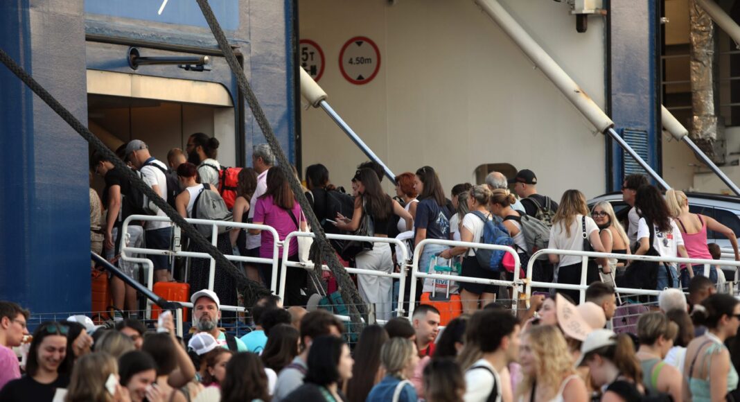 Με τη βαλίτσα στο χέρι και με καλοκαιρινή διάθεση, οι επιβάτες αναχωρούν με τα πλοία για τα ελληνικά νησιά. Από νωρίς το πρωί, μεγάλες ουρές σχηματίζουν επιβάτες και αυτοκίνητα στο λιμάνι του Πειραιά, με πληρότητα που ξεπερνά το 95%.