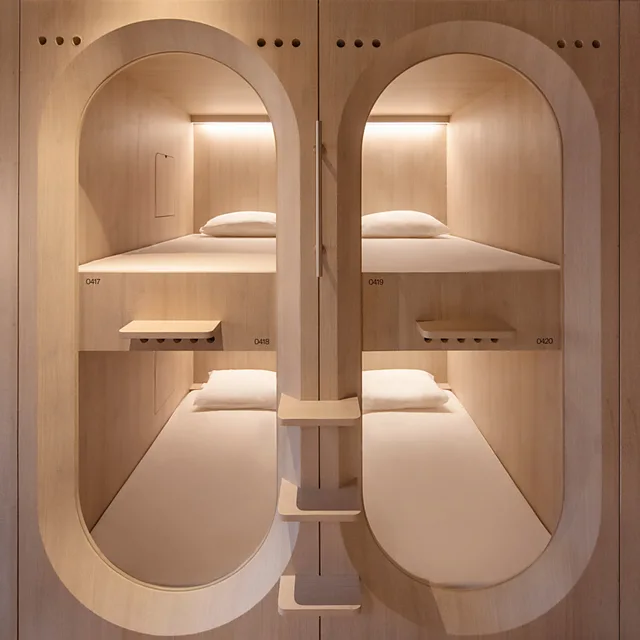 Το πρώτο ξενοδοχείο με κάψουλες στον κόσμο (που ιδρύθηκε στην Οσάκα της Ιαπωνίας το 1979) πρέπει να έμοιαζε με νεκροτομείο, με προσεγμένες σειρές από στενές κάψουλες ύπνου που η καθεμία περιείχε έναν ξαπλωμένο ένοικο. Αλλά την επόμενη μέρα, οι ένοικοι -κυρίως επιχειρηματίες που είχαν δουλέψει μέχρι αργά- σηκώνονταν και επέστρεφαν στο γραφείο, ευγνώμονες για αυτήν την αποτελεσματική λύση ύπνου που τους είχε σώσει από ένα ταξίδι στο σπίτι τις πρώτες πρωινές ώρες.