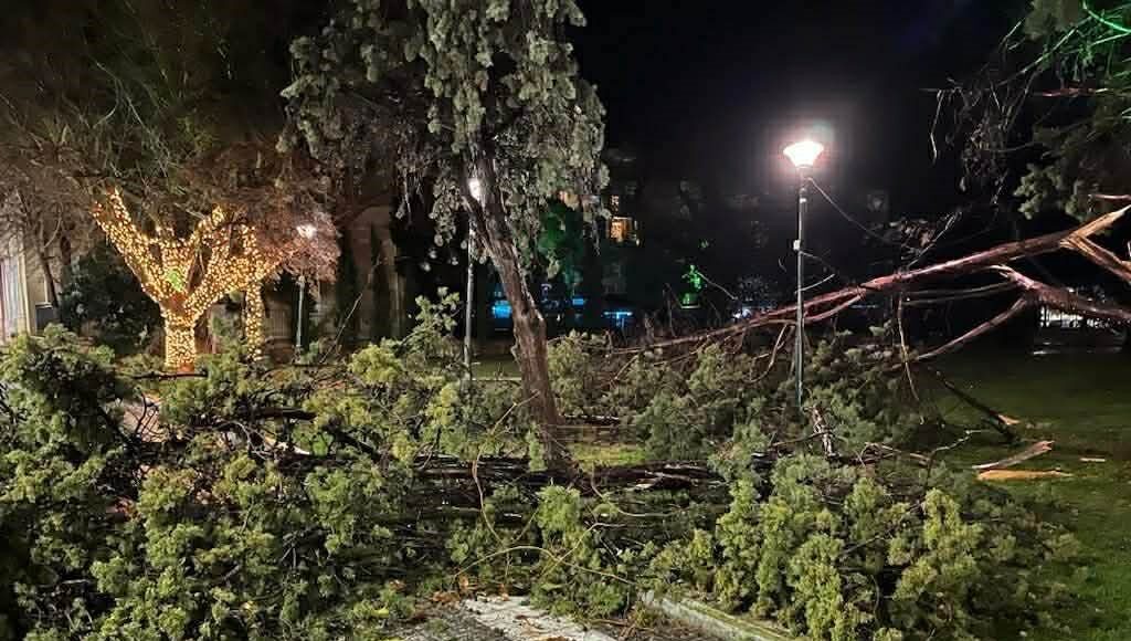 Ριπές ανέμου που έφτασαν τα 155 χλμ./ώρα σύμφωνα με το Εθνικό Αστεροσκοπείο Αθηνών και είχαν διάρκεια περίπου 15 λεπτά, έκοψαν πάνω από 15 δένδρα στην παραλιακή αλλά και στην κεντρική λεωφόρο της πόλης τα οποία είτε έπεσαν πάνω σε σταθμευμένα αυτοκίνητα είτε έκλεισαν την κυκλοφορία των οχημάτων.