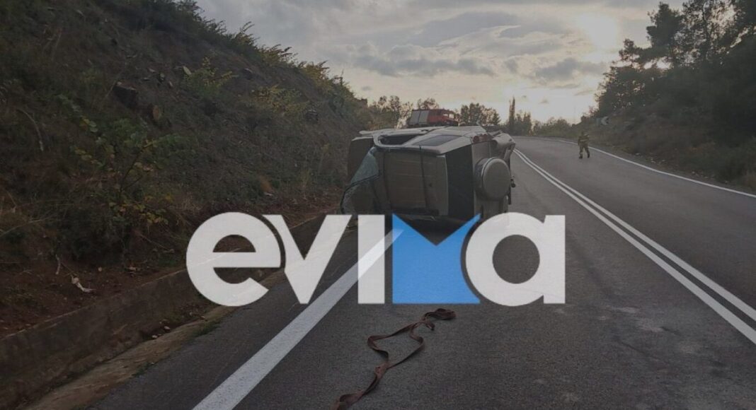 Σύμφωνα με το evima.gr, αυτοκίνητο τύπου τζιπ που κινούνταν στο ύψος του Πανοράματος προς Βόρεια Εύβοια κάτω υπό αδιευκρίνιστες συνθήκες εξετράπη της πορείας του και τούμπαρε σε κεντρικό δρόμο.
