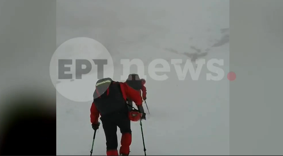 Στο αποκλειστικό ντοκουμέντο που εξασφάλισε το ΕΡΤnews, φαίνεται ο τεράστιος όγκος χιονιού που έπεσε και καταπλάκωσε τους άτυχους ορειβάτες.