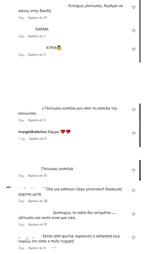 Η Κωνσταντίνα Μπεκιάρη ανέβασε μια φωτογραφία της πριν από τρεις μέρες στο Instagram και πολλοί ήταν εκείνοι που χωρίς να αναφέρουν το όνομα του ηθοποιού, έσπευσαν να σχολιάσουν γράφοντας ότι «γλίτωσε» και πως «το κάρμα μίλησε», με την ίδια να μη δίνει καμιά περαιτέρω απάντηση στα σχόλια αυτά.