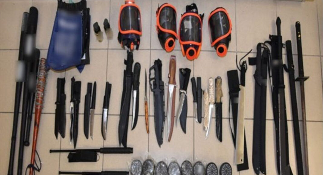 – 14 μαχαίρια, μεταξύ αυτών τρεις ματσέτες, ένας μπαλτάς και μία ανταλλακτική λάμα