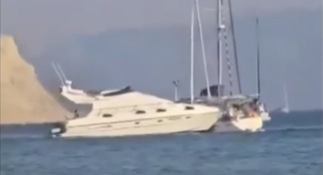 Ένα μεγάλο ταχύπλοο με ιταλική σημαία, το οποίο μετέφερε δύο Γερμανούς επιβάτες, εκτροχιάστηκε για άγνωστο μέχρι στιγμής λόγο και συγκρούστηκε με την πλώρη του στο πλάι ενός αγκυροβολημένου ιστιοπλοϊκού. Η ισχυρή πρόσκρουση προκάλεσε την παράσυρση του ιστιοπλοϊκού, το οποίο τελικά συγκρούστηκε με ένα δεύτερο ιστιοπλοϊκό που βρισκόταν δίπλα του.