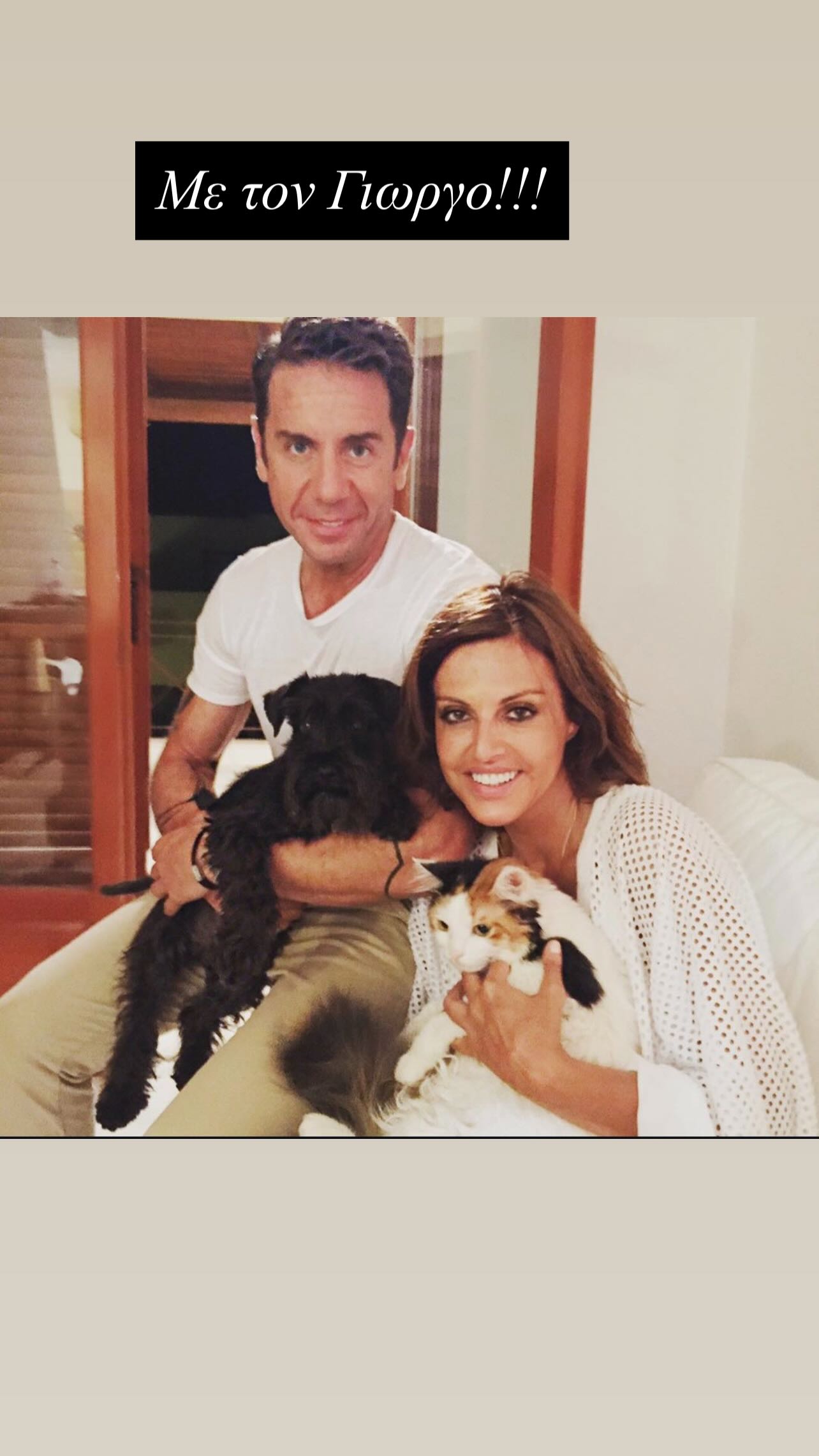 Η Παλαιολόγου χρησιμοποίησε τον προσωπικό της λογαριασμό στο Instagram για να μοιραστεί μια φωτογραφία από το παρελθόν, στην οποία ποζάρει με χαμόγελο πλάι στον τραγουδιστή. «Με τον Γιώργο» έγραψε λιτά, προσφέροντας μια συμβολική αποκλιμάκωση στη δύσκολη στιγμή που περνάει ο φίλος της.