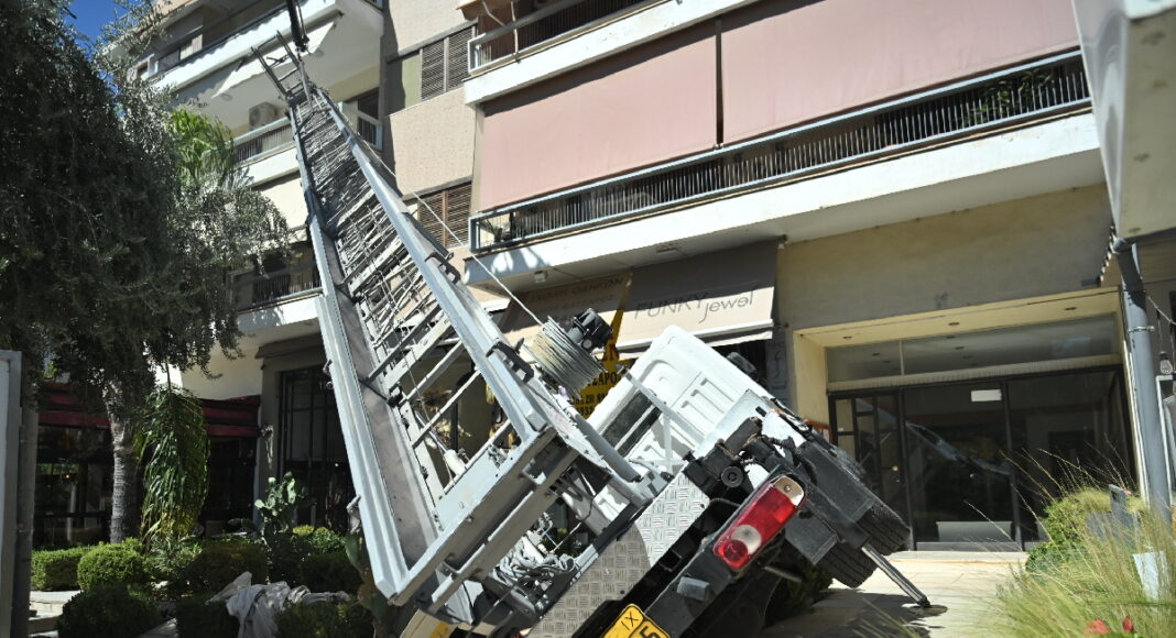 Τροχαίο ατύχημα σημειώθηκε το μεσημέρι του Σαββάτου στη Γλυφάδα, όταν γερανός ανετράπη υπό αδιευκρίνιστες μέχρι στιγμής συνθήκες και προσέκρουσε σε τραπέζια καφετέριας επί της οδού Φοίβης.