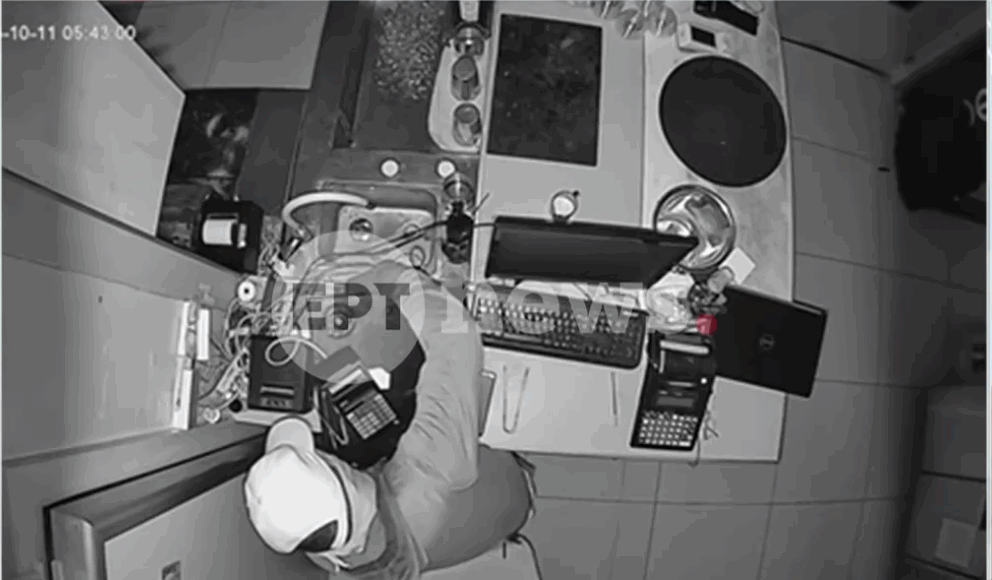 Για τη διάρρηξη στο κατάστημα, στο αποκλειστικό βίντεο – ντοκουμέντο φαίνεται ένας άνδρας να εισβάλλει στον χώρο φορώντας καπέλο, γάντια και μάσκα. Ο δράστης φαίνεται να προσπαθεί επί ώρα να παραβιάσει το ταμείο χρησιμοποιώντας κάποιο εργαλείο, πιθανώς λίμα ή λοστό, ενώ έχει μαζί του φακό και κινητό τηλέφωνο. Τελικά, καταφέρνει να ανοίξει το ταμείο και αφαιρεί περίπου 100 με 200 ευρώ σε κέρματα, προτού αποχωρήσει.