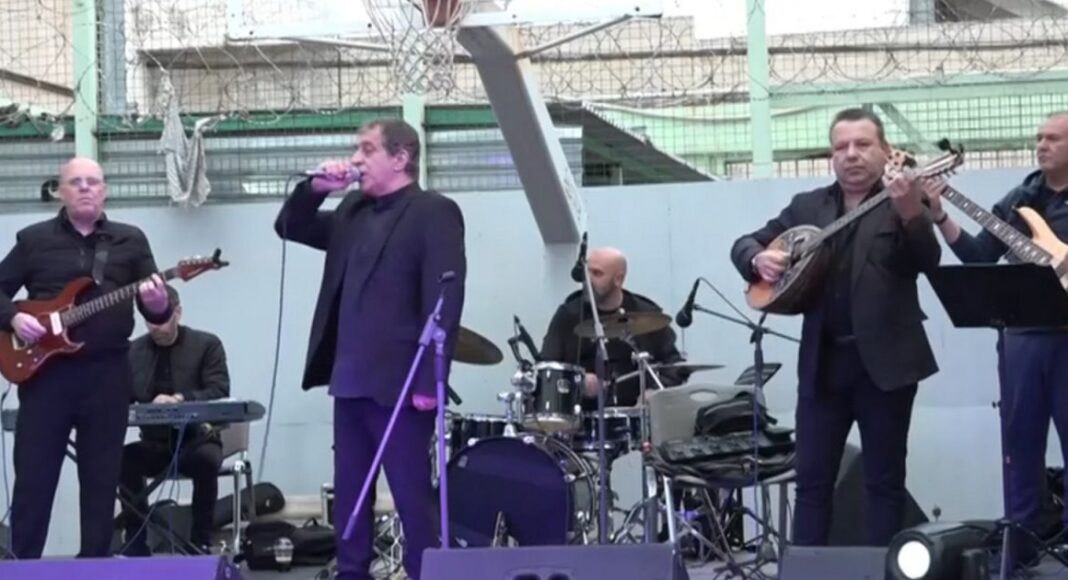 Στον προαύλιο χώρο των φυλακών του Κορυδαλλού τραγούδησε ο Θέμης Αδαμαντίδης και μεταξύ των θεατών μέσα από το κάγκελα του κελιού της ήταν και η Ειρήνη Μουρτζούκου.