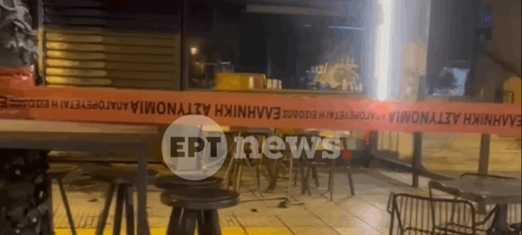 Από την έκρηξη, σημειώθηκαν υλικές ζημιές σε τραπεζοκαθίσματα, αλλά και στην είσοδο της επιχείρησης.