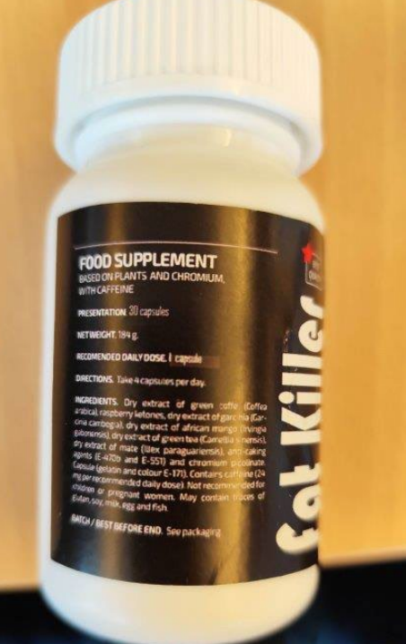 Ο Εθνικός Οργανισμός Φαρμάκων (ΕΟΦ), κατόπιν ενημέρωσης από τις αρχές της Γερμανίας, προειδοποιεί τους καταναλωτές να μην αγοράζουν ή κάνουν χρήση του προϊόντος FAT KILLER capsules. Το ανωτέρω σκεύασμα προωθείται ως συμπλήρωμα διατροφής και είναι πιθανόν να έχει διακινηθεί και στη χώρα μας μέσω ηλεκτρονικού εμπορίου.