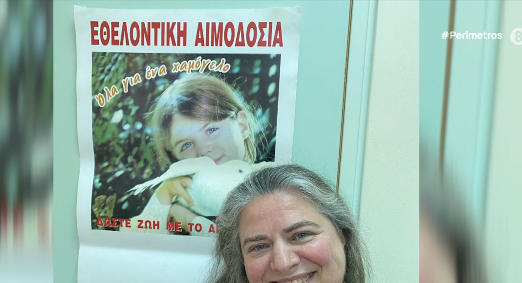 Την ώρα που έμπαινε στο τμήμα Αιμοδοσίας, ως τακτική αιμοδοσία και δότρια αιμοπεταλίων, είδε έκπληκτη την αφίσα, στην οποία ήταν μόλις οχτώ ετών.