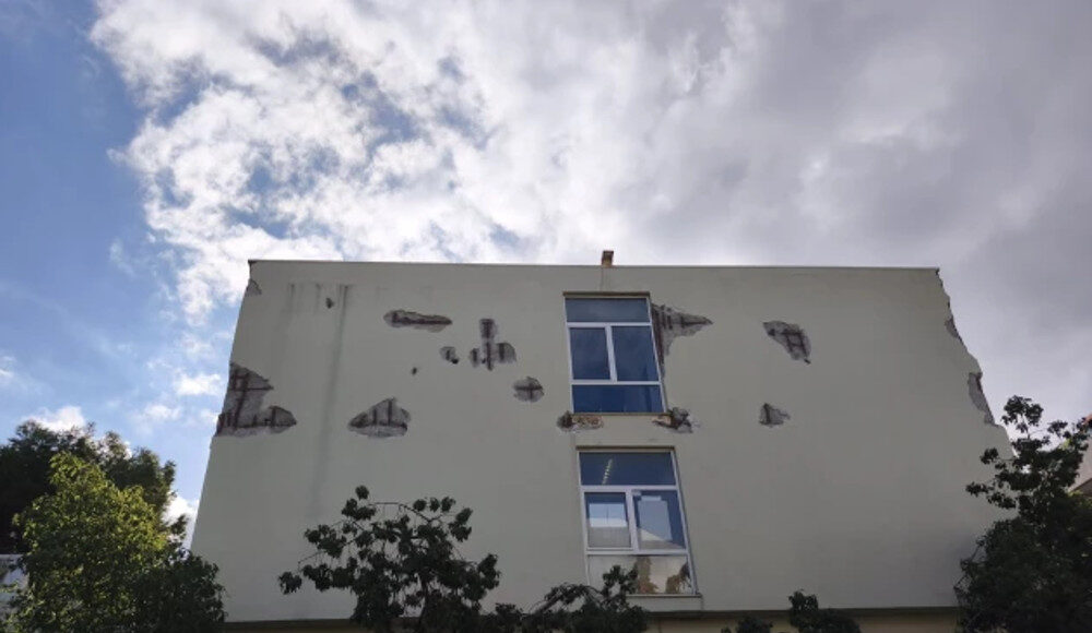 Είναι η δεύτερη φορά που από το ιστορικό κτίριο του Εργατικού Κέντρου Ηρακλείου στη λεωφόρο Δημοκρατίας αποκολλήθηκαν μεγάλα κομμάτια σοβάδων και έπεσαν από μεγάλο ύψος, πολύ κοντά μάλιστα σε διερχόμενους πολίτες.