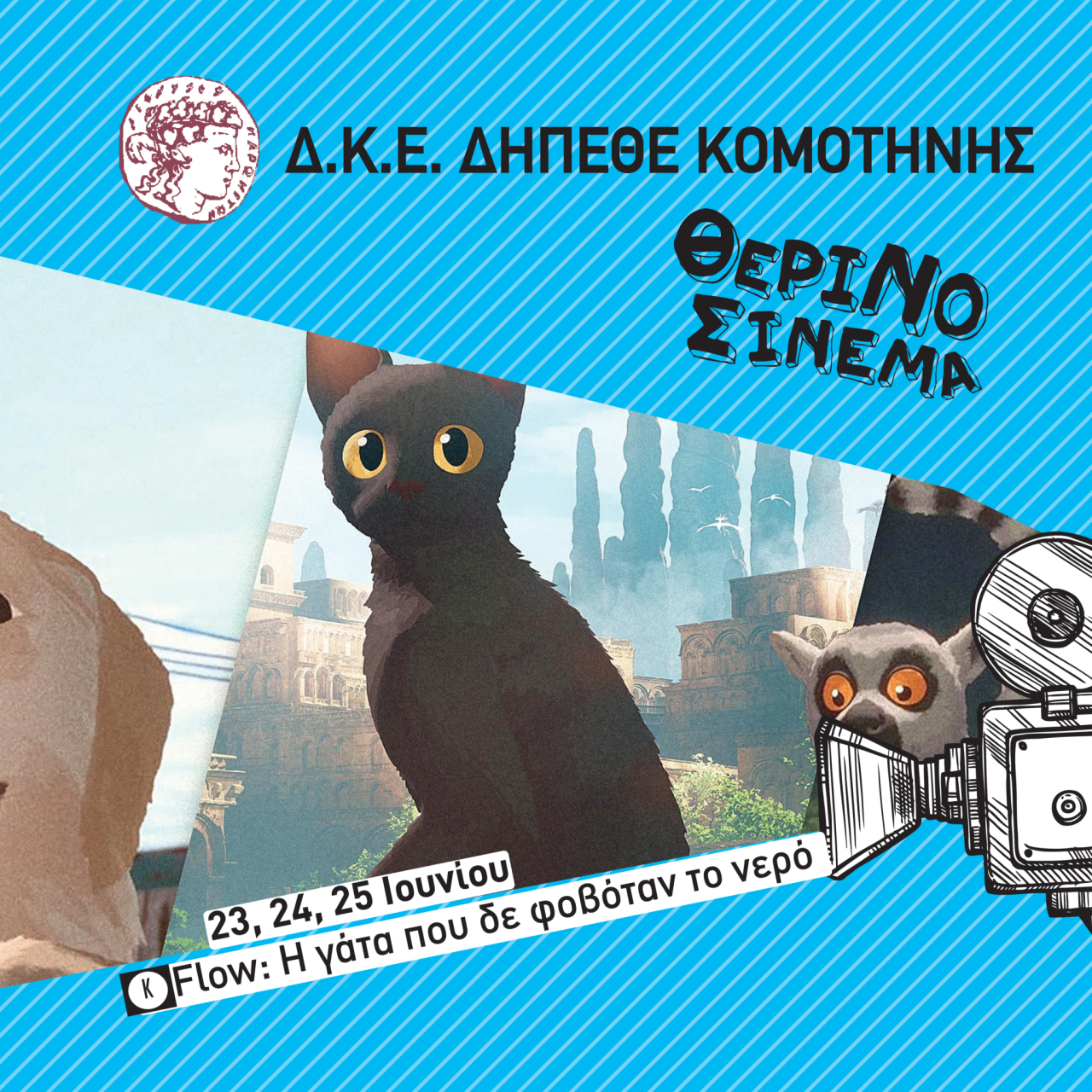 Ο θερινός κινηματογράφος του ΔΗΠΕΘΕ Κομοτηνής συνεχίζει τις φετινές προβολές του στο θερινό δημοτικό θέατρο, με την παιδική ταινία “Flow – Η γάτα που δεν φοβόταν το νερό”.