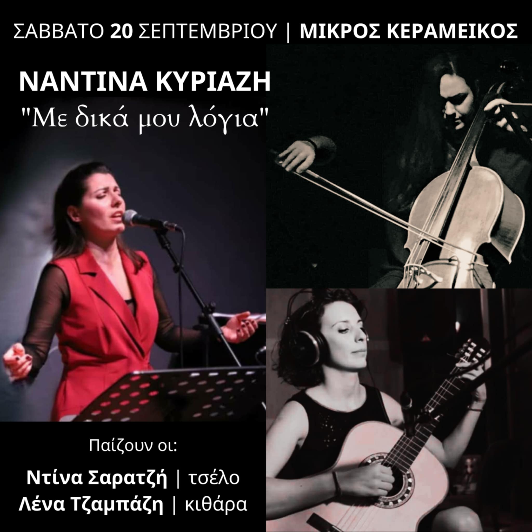 Στην παράσταση, η Ναντίνα Κυριαζή θα συνοδεύεται επί σκηνής από δύο ταλαντούχες μουσικούς: τη Λένα Τζαμπάζη στην κιθάρα και τη Ντίνα Σαρατζή στο τσέλο.
