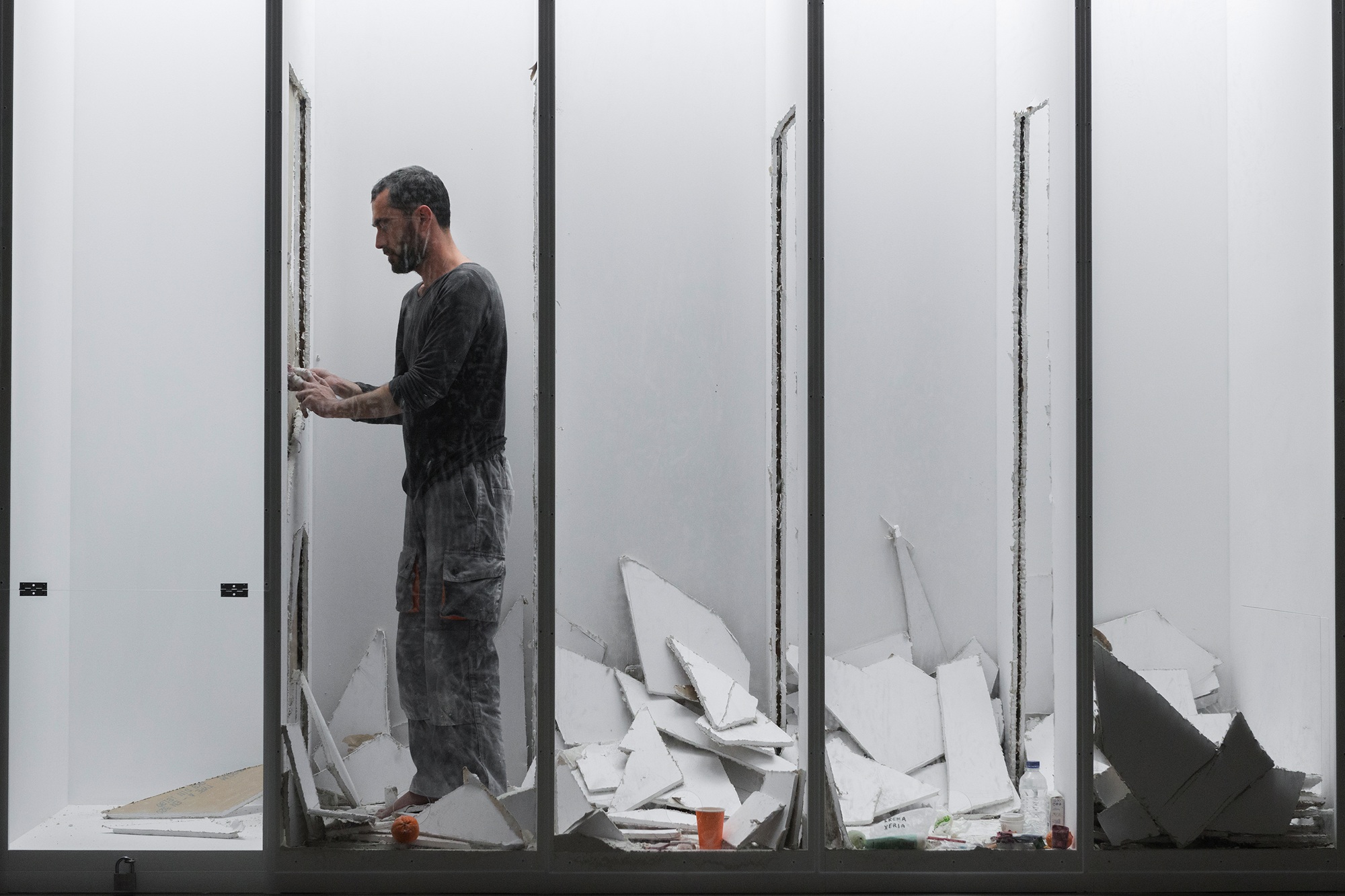 Μέσα σε έναν κύκλο διαμέτρου δέκα μέτρων, οι τρεις καλλιτέχνες κινούνται αδιάκοπα σε επαναλαμβανόμενες διαδρομές, στον ρυθμό ενός ηλεκτρικού μετρονόμου που ακούγεται με ενίσχυση στον χώρο.