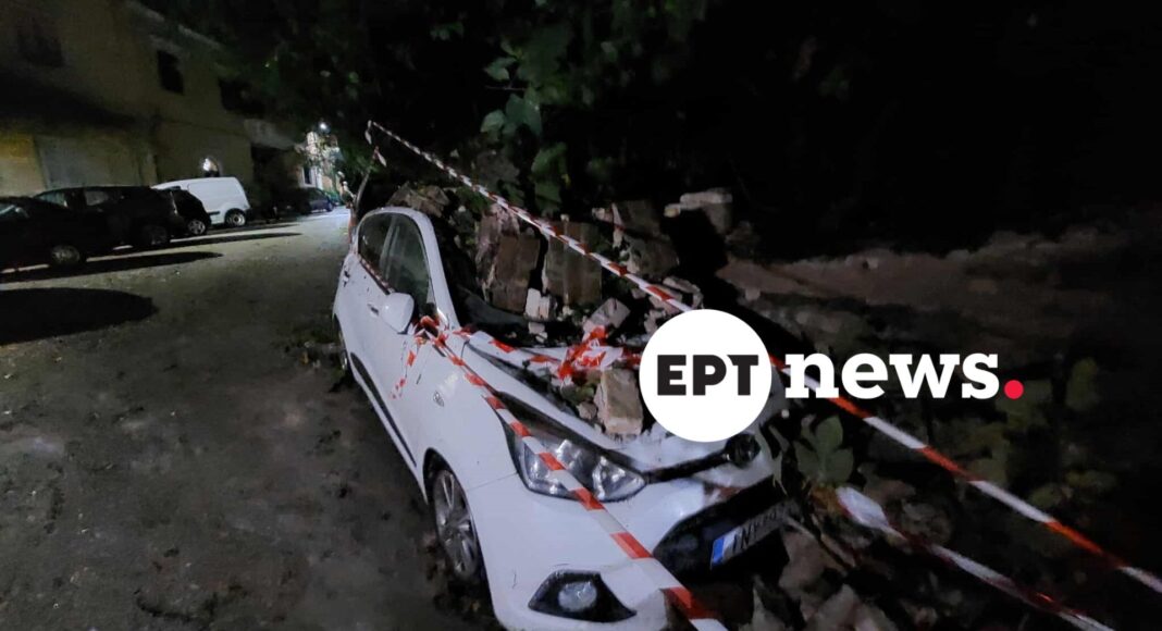 Κέρκυρα: Κατέρρευσε τοιχίο από την έντονη βροχόπτωση καταπλακώνοντας αυτοκίνητο