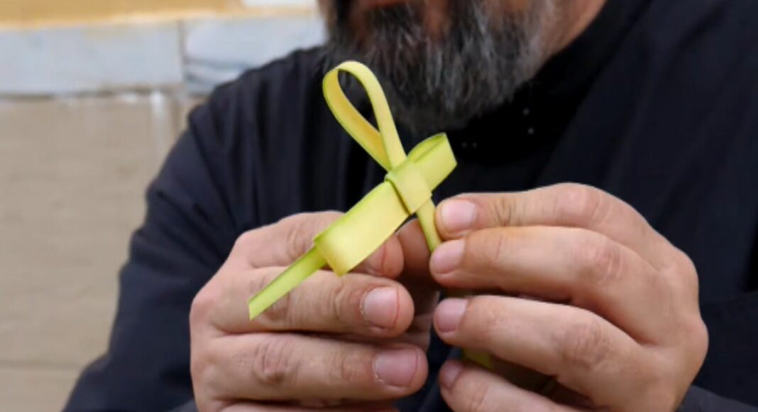 Οικογένειες, γυναίκες και παιδιά στην Κέρκυρα μαζεύονται και πλέκουν βάγια σε σταυρό, φτιαγμένα από φύλλα της «καρδιάς» του φοίνικα, ένα έθιμο με ιδιαίτερο συμβολισμό.