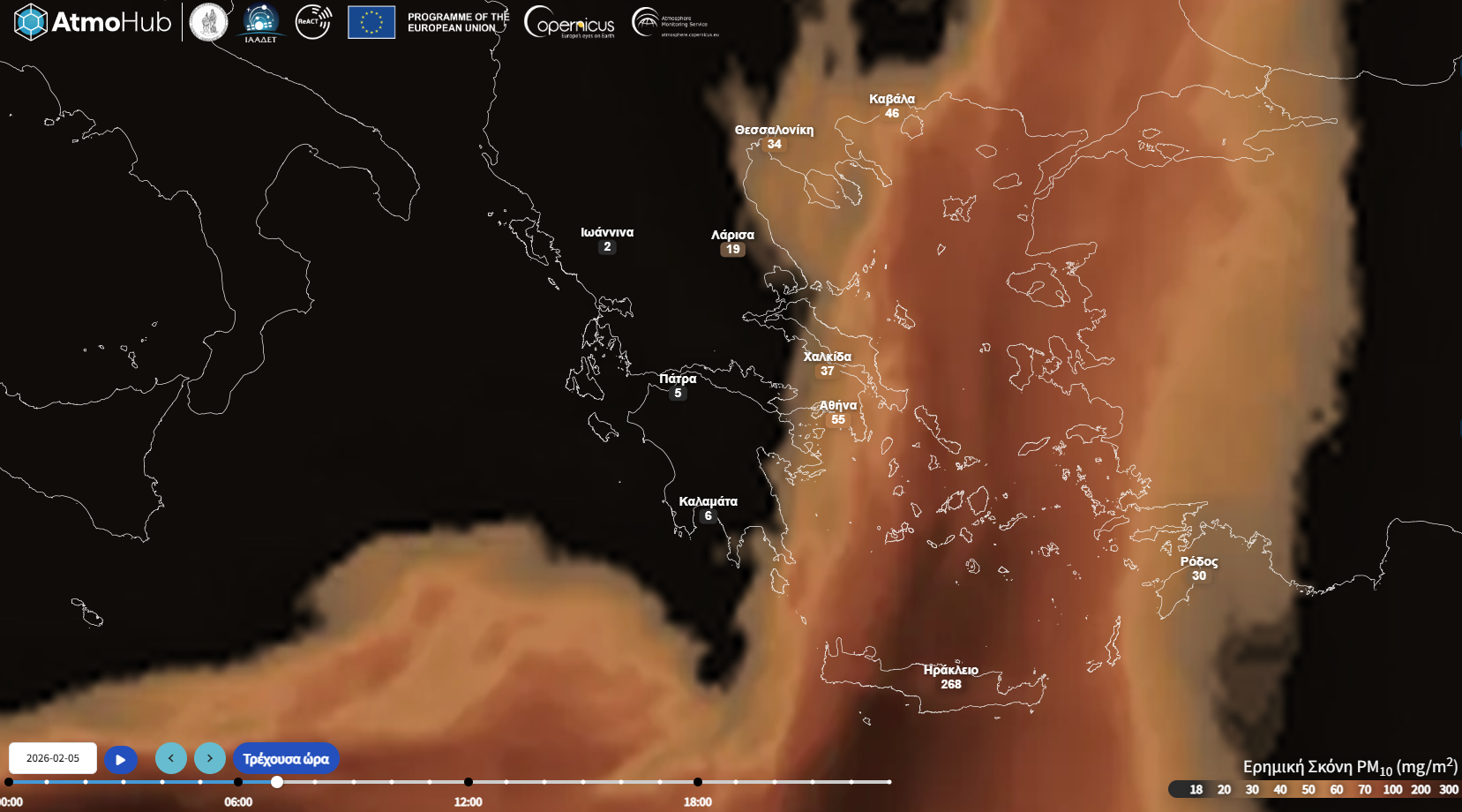 Μπορείτε να παρακολουθείτε την πρόγνωση και την εξέλιξη του φαινομένου, σύμφωνα με τα δεδομένα της Υπηρεσίας για την Παρακολούθηση της Ατμόσφαιρας CAMS στο διαδικτυακό portal του #AtmoHub: https://portal.atmohub.gr/erimiki-skoni