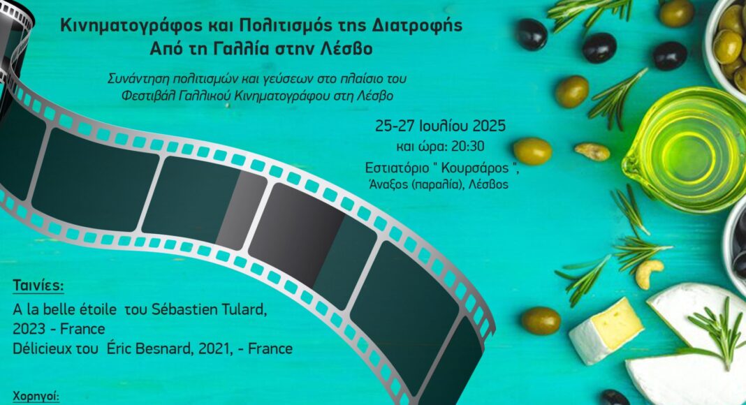 Η Λέσβος, με τη γαστρονομία της, τα βότανα, το ελαιόλαδο και τον πολιτισμό της, συναντά τη Γαλλία μέσα από τον κινηματογράφο, την γαστρονομία και τις κοινές αξίες της τοπικότητας, της βιωσιμότητας και της πολιτισμικής ανθεκτικότητας. Μια εκδήλωση που είναι ταυτόχρονα γιορτή, αφήγηση και πρόσκληση να δούμε τη διατροφή όχι μόνο ως ανάγκη ή απόλαυση, αλλά ως πράξη πολιτισμού.
