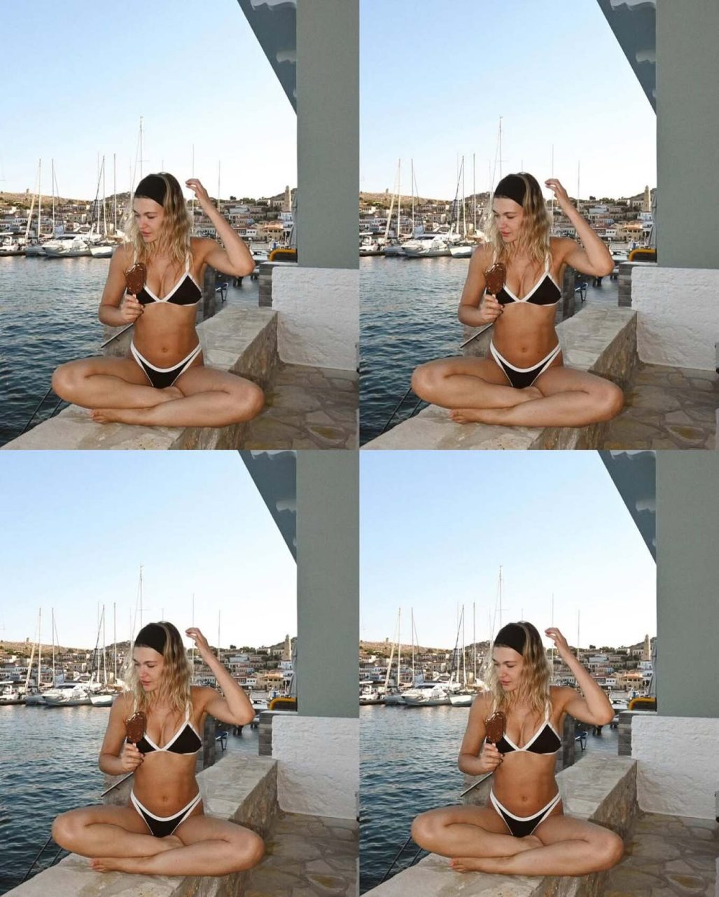Σε αυτές τις φωτογραφίες, η Κλέλια Ανδριολάτου εμφανίζεται φορώντας ένα ασπρόμαυρο μπικίνι. Σε ορισμένες εικόνες, η ηθοποιός ποζάρει δίπλα στη θάλασσα, ενώ σε άλλες απολαμβάνει παγωτό στο μπαλκόνι της. Στη λεζάντα που συνοδεύει την ανάρτησή της, έγραψε: «Αγαπημένο άγχος, ας χωρίσουμε».