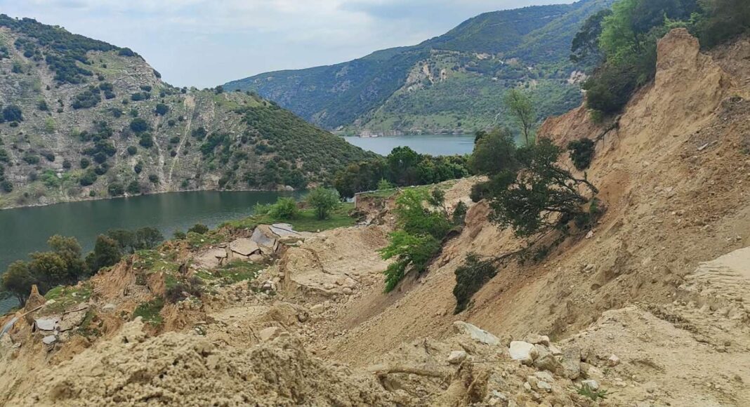 Η μεγάλη κατολίσθηση και καθιστά τον δρόμο μη προσβάσιμο και ιδιαίτερα επικίνδυνο, καθώς έχει κοπεί κυριολεκτικά στα δύο. Πρόκειται για επαρχιακή οδό που εξυπηρετεί τόσο τους κατοίκους της περιοχής, όσο και επισκέπτες, εργαζόμενους της ΔΕΗ στο Φράγμα και κτηνοτρόφους.