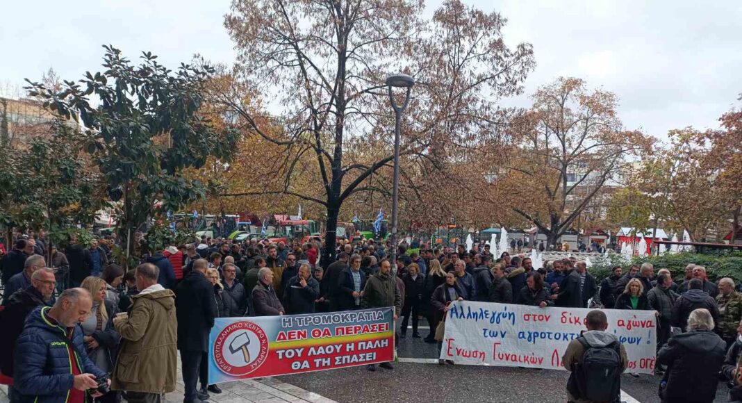 Οι αγρότες από το μπλόκο της Νίκαιας πραγματοποίησαν συλλαλητήριο με συμβολικό αριθμό τρακτέρ στην κεντρική πλατεία, ζητώντας να αθωωθούν οι δύο αγροτες.