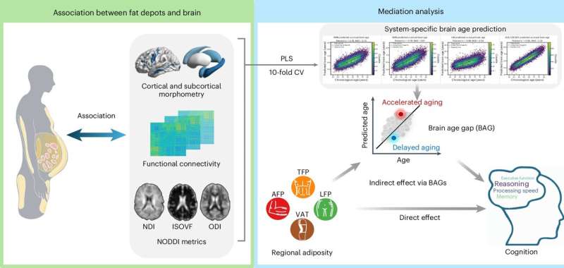 Στη μελέτη τους  που δημοσιεύθηκε στο επιστημονικό περιοδικό Nature Mental Health, οι ερευνητές σχεδίασαν μια πολυμορφική ανάλυση για να απομονώσουν την επίδραση της κατανομής λίπους από τη γενική παχυσαρκία και να αξιολογήσουν τις συσχετίσεις της με τη μορφολογία του εγκεφάλου, τη συνδεσιμότητα, τη μικροδομή της λευκής ουσίας και τη γνωστική λειτουργία. Η μελέτη βασίστηκε σε δεδομένα από το UK Biobank και περιέλαβε 23.088 ενήλικες με καταγεγραμμένα ποσοστά λίπους στα χέρια, τα πόδια και τον κορμό, καθώς και 18.886 ενήλικες με μετρήσεις σπλαχνικού λίπους. Οι συμμετέχοντες με σοβαρές φυσικές, νευρολογικές ή ψυχιατρικές παθήσεις αποκλείστηκαν.