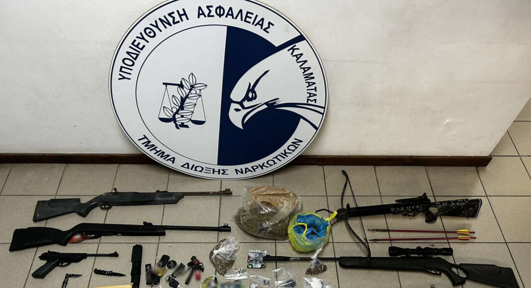 Κατά τις έρευνες βρέθηκαν και κατασχέθηκαν πάνω από μισό κιλό κάνναβης, ναρκωτικά δισκία, όπλα, χρήματα και οχήματα που χρησιμοποιούνταν για τη διακίνηση.
