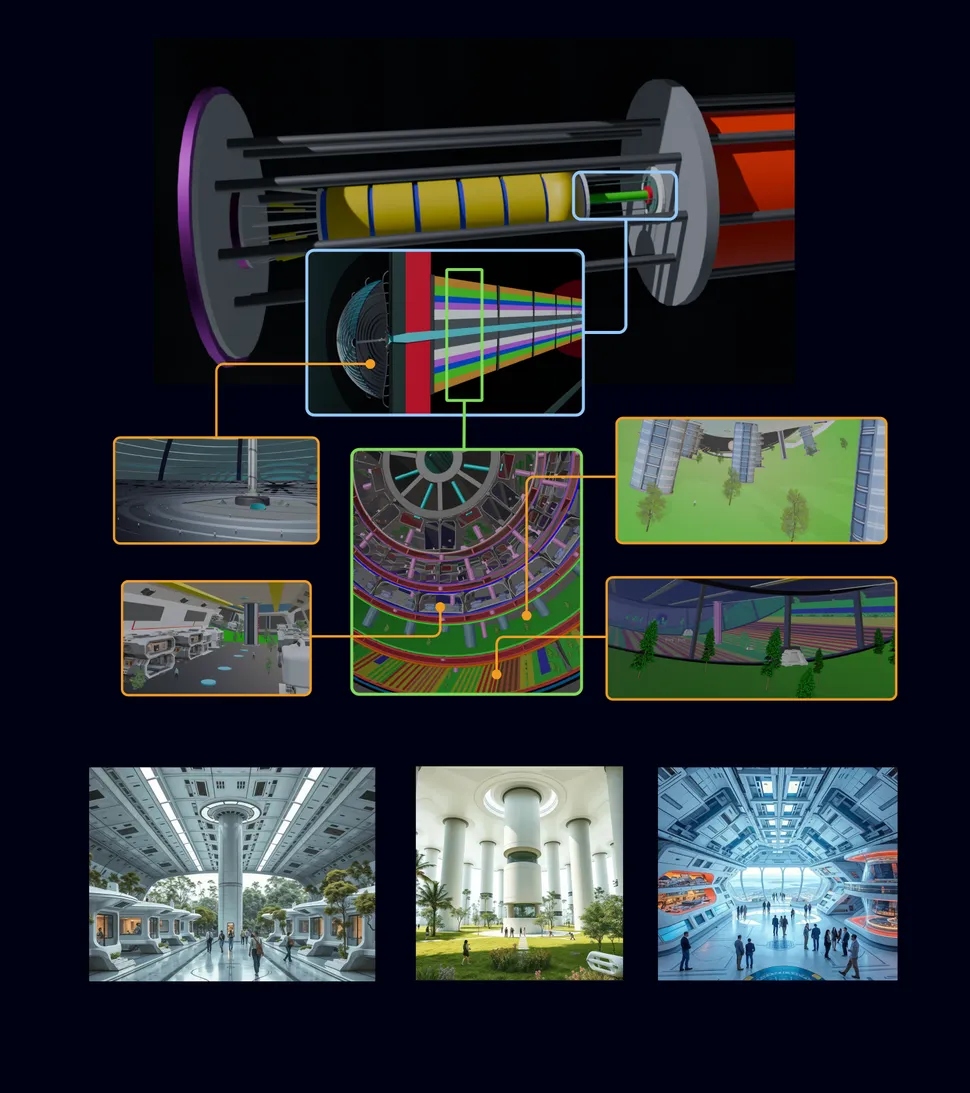 Πριν από την επιβίβαση, οι πρώτες γενιές θα πρέπει να ζήσουν σε απομόνωση στην Ανταρκτική για 70 έως 80 χρόνια, ώστε να προσαρμοστούν ψυχολογικά στις συνθήκες της αποστολής. Το σκάφος, που θα μπορούσε να κατασκευαστεί μέσα σε 20 με 25 χρόνια, διατηρεί τεχνητή βαρύτητα μέσω συνεχούς περιστροφής. Είναι δομημένο σαν ρωσική μπάμπουσκα, με πολλαπλά επίπεδα να περιβάλλουν έναν κεντρικό πυρήνα.