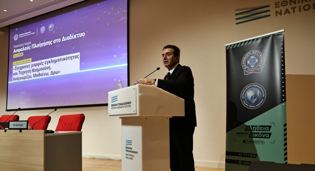 «Το εισαγωγικό βίντεο ανέδειξε με εντυπωσιακό τρόπο το πώς η τεχνητή νοημοσύνη μπορεί να χρησιμοποιηθεί τόσο για το καλό, όσο και για το κακό, αποτυπώνοντας ρεαλιστικά τις δυνατότητες παραπλάνησης, χειραγώγησης και τρομοκράτησης των πολιτών», τόνισε αμέσως μετά την προβολή του βίντεο ο κ. Χρυσοχοΐδης και συμπλήρωσε: «Σήμερα βρισκόμαστε εδώ, για να ενισχύσουμε τη συλλογική μας άμυνα, να διασφαλίσουμε ότι η τεχνολογία θα παραμείνει σύμμαχος δικός μας, της κοινωνίας και της δημοκρατίας». Αναφέρθηκε, επίσης, στην αύξηση των διαδικτυακών απατών επισημαίνοντας πως τα deep fake βίντεο αλλοιώνουν την πραγματικότητα, ενώ το κυβερνοέγκλημα εξελίσσεται σε βασικό πυλώνα του οργανωμένου εγκλήματος, με διεθνή χαρακτηριστικά. Πρόσθεσε ότι, τα εγκληματικά δίκτυα, διαρκώς απεργάζονται τρόπους για να πλήξουν τους πολίτες, τα συμφέροντά τους, τη ζωή τους, τις κρίσιμες υποδομές, ενώ το διαδίκτυο και η τεχνητή νοημοσύνη διαμορφώνουν καθοριστικά, πλέον, τον τρόπο με τον οποίο εργαζόμαστε επικοινωνούμε, μαθαίνουμε, ζούμε, ιδιαίτερα για τα παιδιά και τους νέους, όμως η κακόβουλη αξιοποίησή του δημιουργεί νέες σύνθετες απειλές.