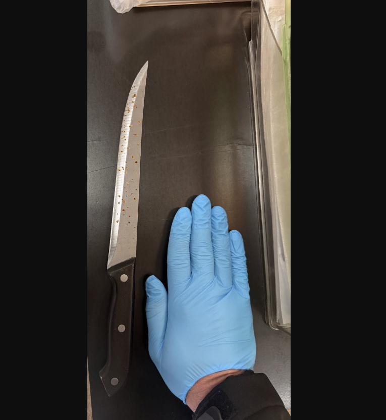 Στην κατοχή του βρέθηκε το μαχαίρι με το οποίο διέπραξε τη ληστεία, καθώς και το αφαιρεθέν κινητό τηλέφωνο το οποίο και αποδόθηκε στην κάτοχό του.