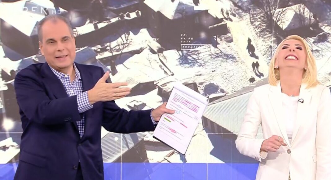 Ωστόσο, ελάχιστα δευτερόλεπτα μετά, το ύφος και το είδος της μουσικής στο πλατό άλλαξε… 180 μοίρες και τη θέση της Μαρίας Κάλλας πήρε η Ιουλία Καλλιμάνη, με τους δημοσιογράφους να ξεσπούν σε γέλια και να αντιμετωπίζουν το περιστατικό με χιούμορ.
