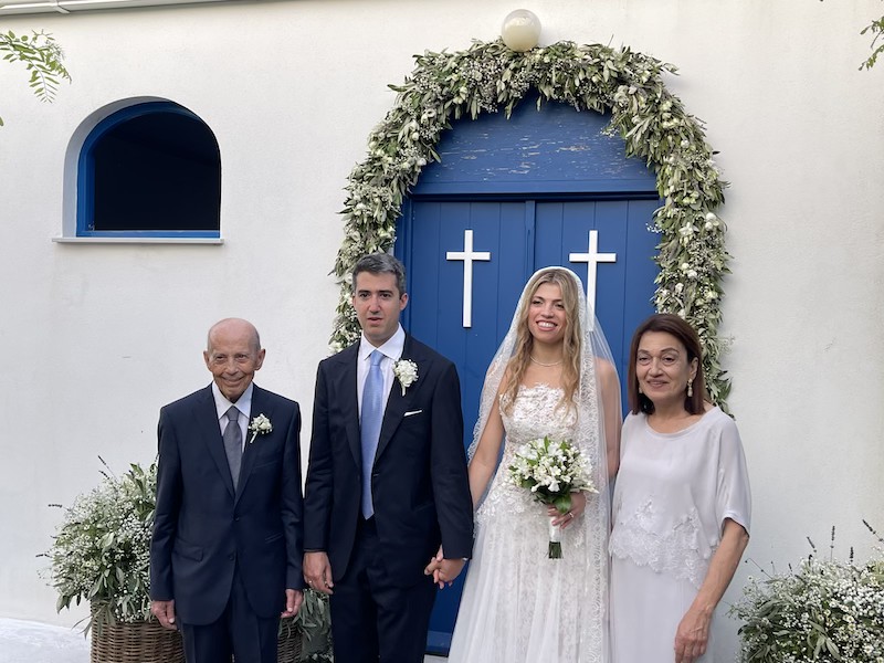 Το λαμπερό ζευγάρι έλαμπε από ευτυχία, ενώ κουμπάροι ήταν οι Γιάννης Μολφέτας, Γιώργος Σκαρβέλης, Ελένη Τζαννάτου και Ιόλη Ψαλίδα. Ακολούθησε κομψή δεξίωση, ακριβώς δίπλα, στην παραλία των Λεπέδων, σε ένα μαγευτικό σκηνικό δίπλα στο κύμα, με πλήθος αγαπημένων προσώπων να εύχεται βίον ανθόσπαρτον.
