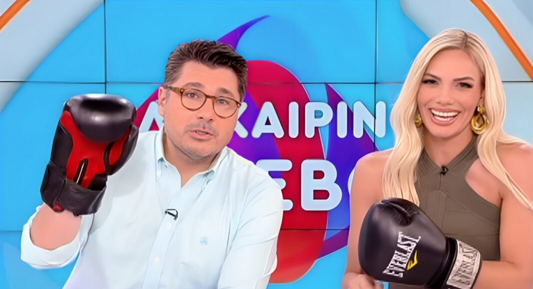 Με δύο γάντια του μποξ μπήκε στο πλατό η Άννα Ζηρδέλη, τα οποία και παρέδωσε στους παρουσιαστές, προκειμένου να προκαλέσουν κάποιον σε “μάχη”! Ο Λάμπρος Κωνσταντάρας επέλεξε την… Κατερίνα Καραβάτου, ενώ η Ιωάννα Μαλέσκου τον Δημήτρη Ουγγαρέζο.