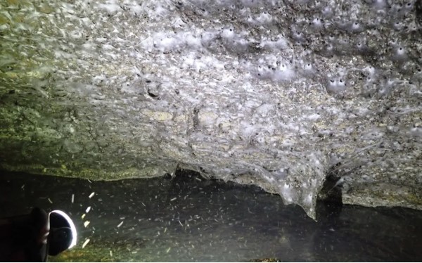 Αντ’ αυτού, οι αράχνες τρώνε σκνίπες που δεν τσιμπάνε, οι οποίες με τη σειρά τους τρέφονται με λευκά μικροβιακά βιοφίλμ — γλοιώδεις εκκρίσεις που προστατεύουν τους μικροοργανισμούς από τις απειλές του περιβάλλοντός τους — από βακτήρια που οξειδώνουν το θείο στη σπηλιά. Ένα πλούσιο σε θείο ρεύμα που τροφοδοτείται από φυσικές πηγές ρέει μέσα από το θειούχο σπήλαιο, γεμίζοντας την σπηλιά με υδρόθειο και βοηθώντας τα μικρόβια, τις σκνίπες και τους θηρευτές τους να επιβιώσουν, έγραψαν οι ερευνητές στη μελέτη.