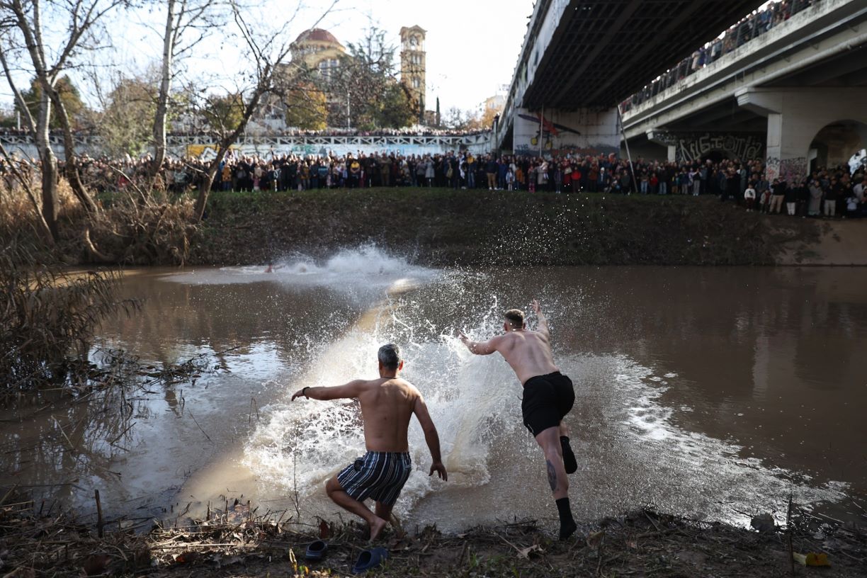 Μετά τη θεία λειτουργία που τελέστηκε χοροστατούντος του Μητροπολίτη Λαρίσης και Τυρνάβου κ.κ. Ιερώνυμου, ακολούθησε η έξοδος από τον Ιερό Μητροπολιτικό Ναό για την κατάδυση του Τιμίου Σταυρού στα νερά του Πηνειού όπου επτά τολμηροί πήδηξαν για να πιάσουν τον σταυρό. Τυχερός αναδείχθηκε 0 22χρονος Ραφαήλ Νικολάου από την Γιάννουλη Λάρισας.