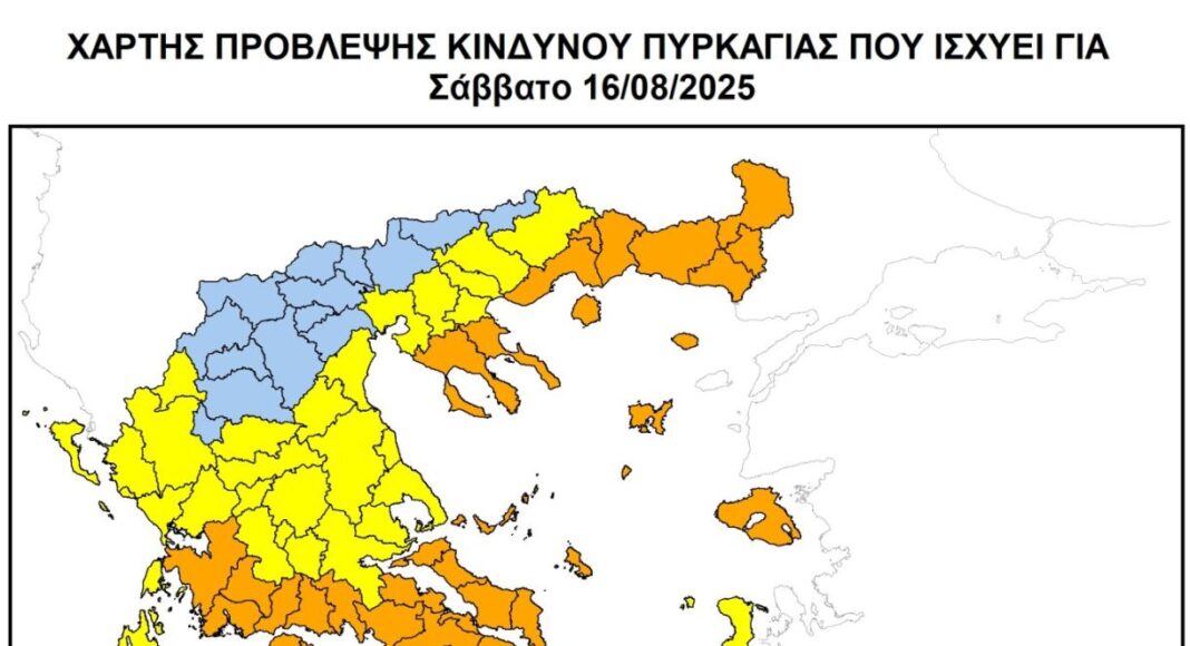 Πολύ υψηλός κίνδυνος πυρκαγιάς (κατηγορία 4), προβλέπεται και για σήμερα Σάββατο 16 Αυγούστου, σύμφωνα με τον Χάρτη Πρόβλεψης Κινδύνου Πυρκαγιάς που εκδίδει η γενική γραμματεία Πολιτικής Προστασίας, για τις εξής περιοχές: