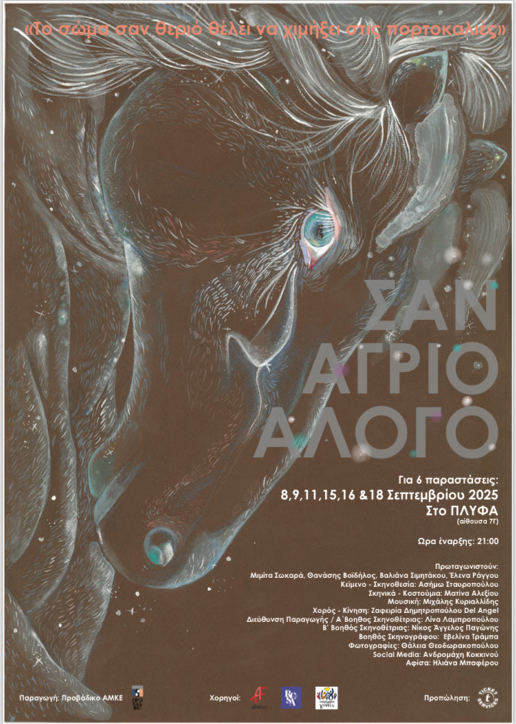 Όπως είχαμε αναφέρει και σε προηγούμενο κείμενό μας: «Η παράσταση “Σαν Άγριο Άλογο” αποτελεί μια πρωτότυπη θεατρική πρόταση, εμπνευσμένη από προσωπικές εμπειρίες της δημιουργού της, Ασήμως Σταυροπούλου. Μέσα από ποιητική γλώσσα και διαλόγους, το έργο εμβαθύνει στην πολυπλοκότητα της ανθρώπινης ταυτότητας και τη διαρκή διαδικασία αυτο-ανακάλυψης».