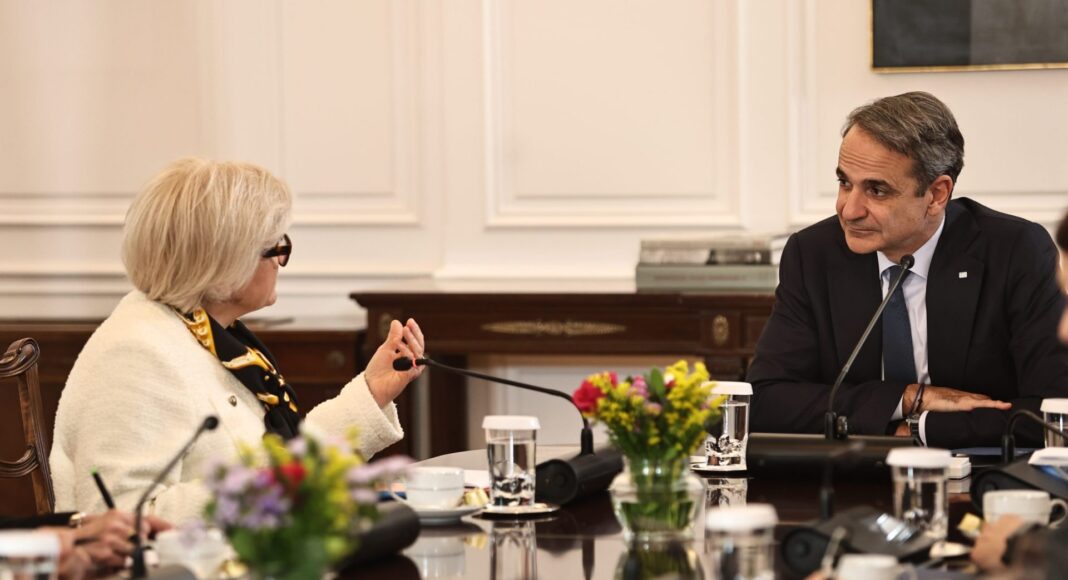 O Κυριάκος Μητσοτάκης συναντήθηκε στο Μέγαρο Μαξίμου με την Υπουργό Ενόπλων Δυνάμεων της Γαλλίας Κατρίν Βοτρέν.