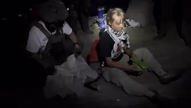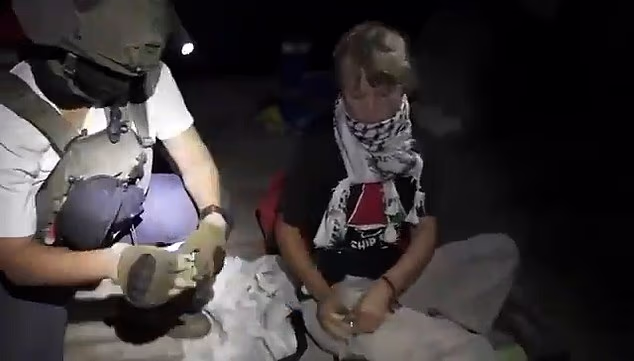 Σε βίντεο που δημοσιεύτηκε στο X από το Υπουργείο Εξωτερικών του Ισραήλ, η Σουηδέζα ακτιβίστρια φαίνεται στο πάτωμα, ανάμεσα σε κρατούμενους.