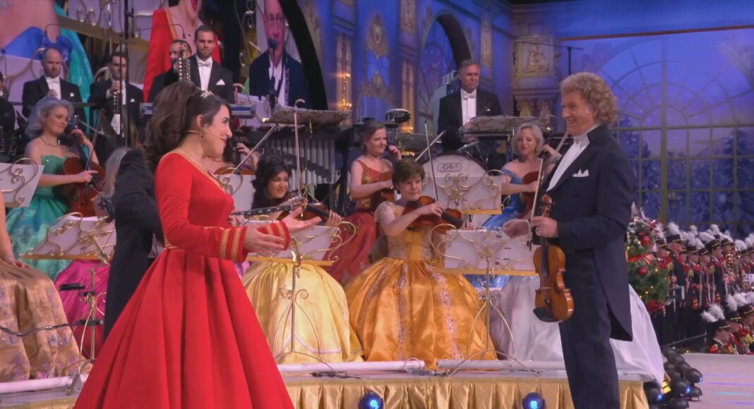 Ο Αντρέ Ριέ επέλεξε να εντάξει στο πρόγραμμα της συναυλίας του τα ελληνικά κάλαντα, μπροστά σε κατάμεστο κοινό που στη μεγάλη του πλειοψηφία δεν γνωρίζει την ελληνική γλώσσα, με ερμηνεία από Ελληνίδα σοπράνο.