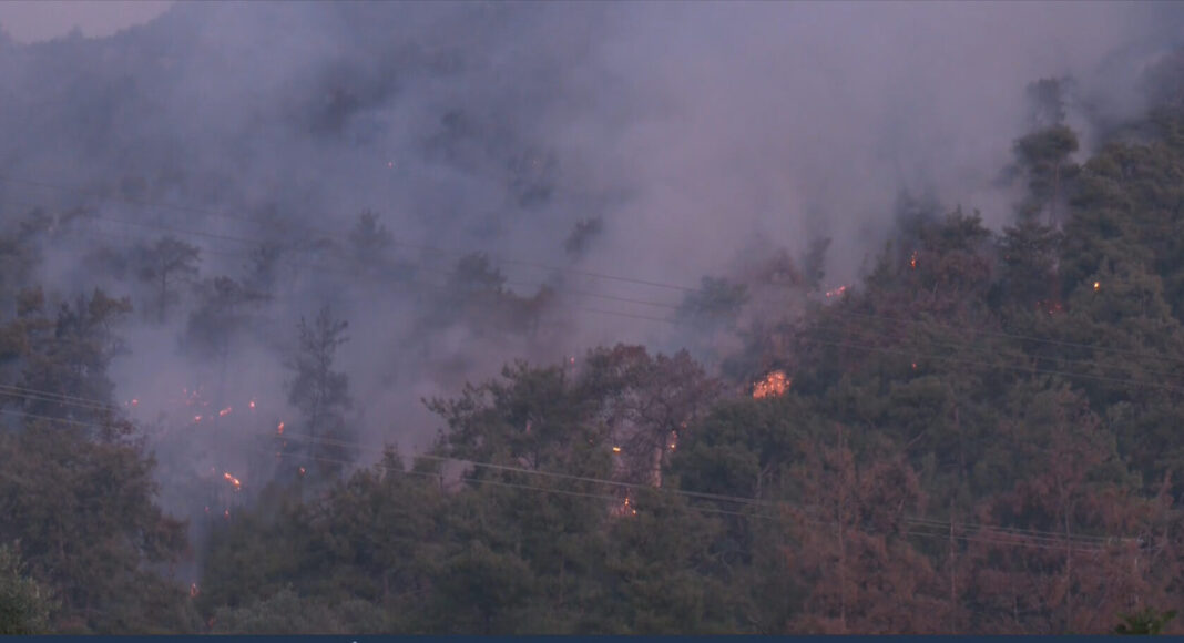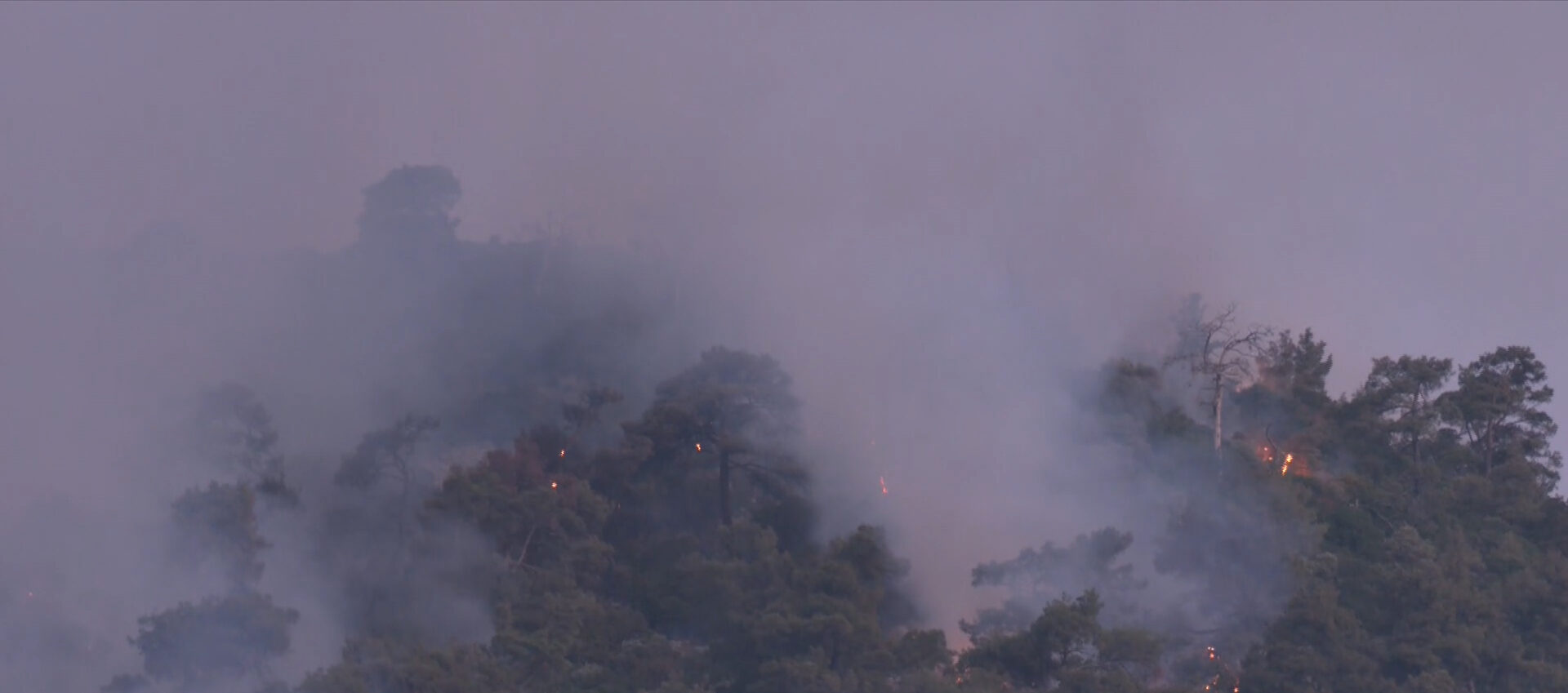 Με το πρώτο φως της ημέρας άρχισαν να επιχειρούν και τα εναέρια μέσα με την ελπίδα να περιοριστεί το πύρινο μέτωπο, καθώς η φωτιά καίει σε δύσβατο σημείο.