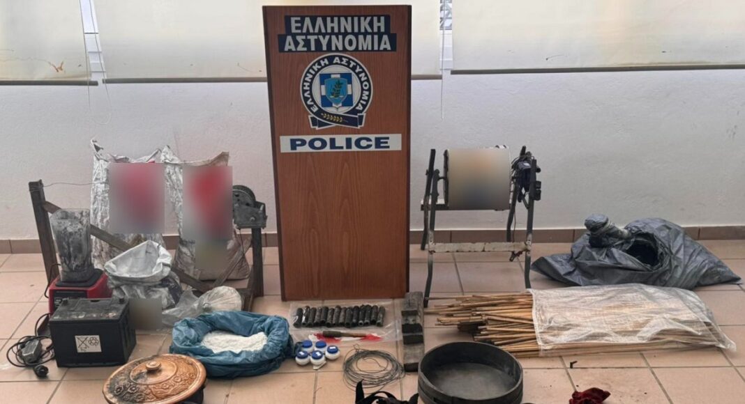 Η αποθήκη εντοπίστηκε από αστυνομικούς και σε έρευνα που πραγματοποιήθηκε, παρουσία δικαστικού λειτουργού, βρέθηκαν και κατασχέθηκαν: