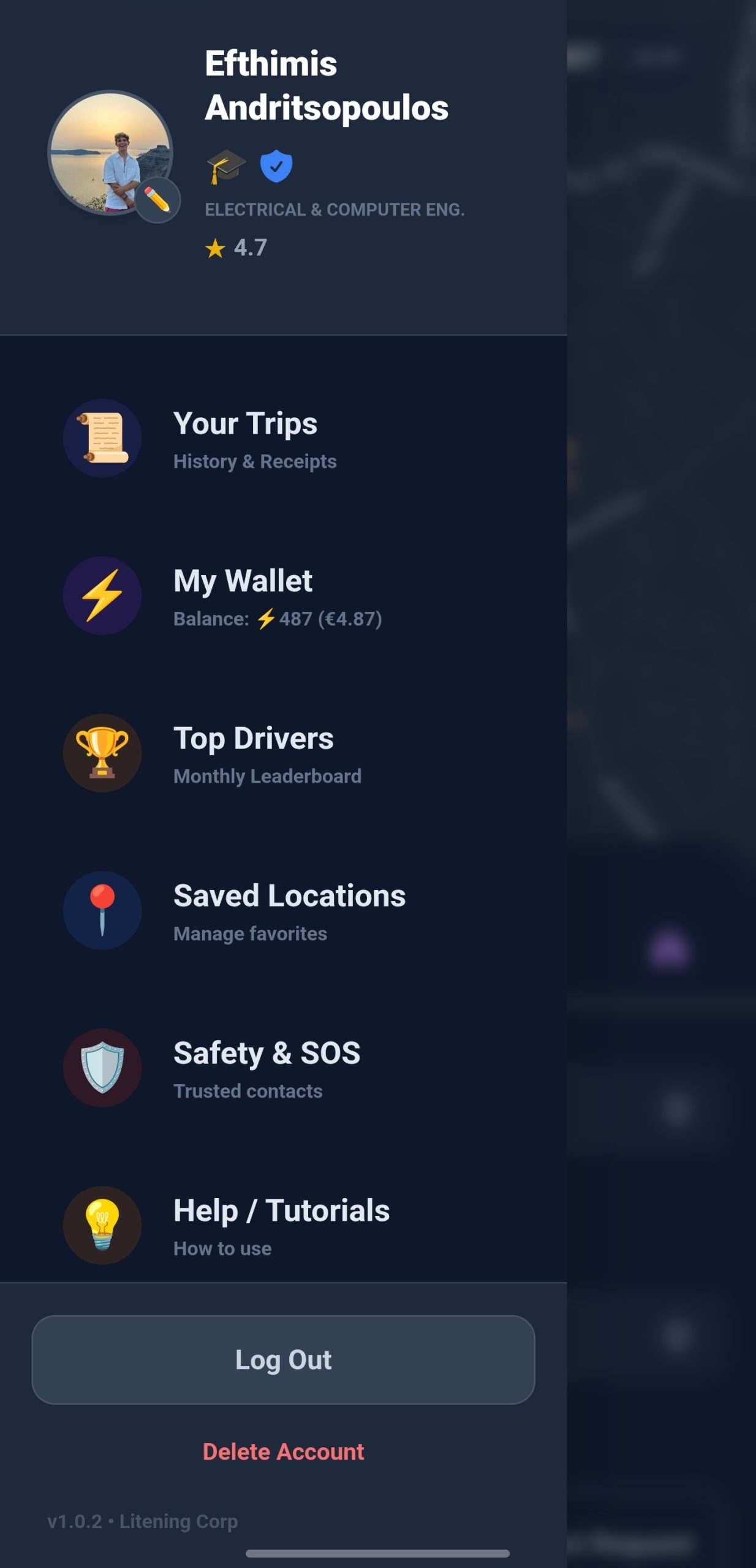 Το “Litening” δεν αποτελεί επαγγελματική υπηρεσία μεταφοράς και δεν ανταγωνίζεται τους επαγγελματίες οδηγούς της πόλης. Αντιθέτως, βασίζεται στον έξυπνο διαμοιρασμό εξόδων, προσφέροντας μια ουσιαστική λύση αλληλοβοήθειας απέναντι στην ακρίβεια: