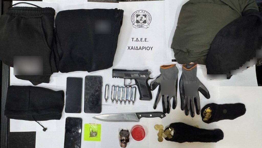 Ενδεικτικό της θρασύτητας της δράσης τους αποτελεί το γεγονός ότι είχαν αποκρύψει αεροβόλο πιστόλι, μαχαίρι και γάντια που είχαν χρησιμοποιήσει στις εγκληματικές τους πράξεις σε θαμνώδες σημείο στον προαύλιο χώρο σχολικού κτηρίου στο Χαϊδάρι.