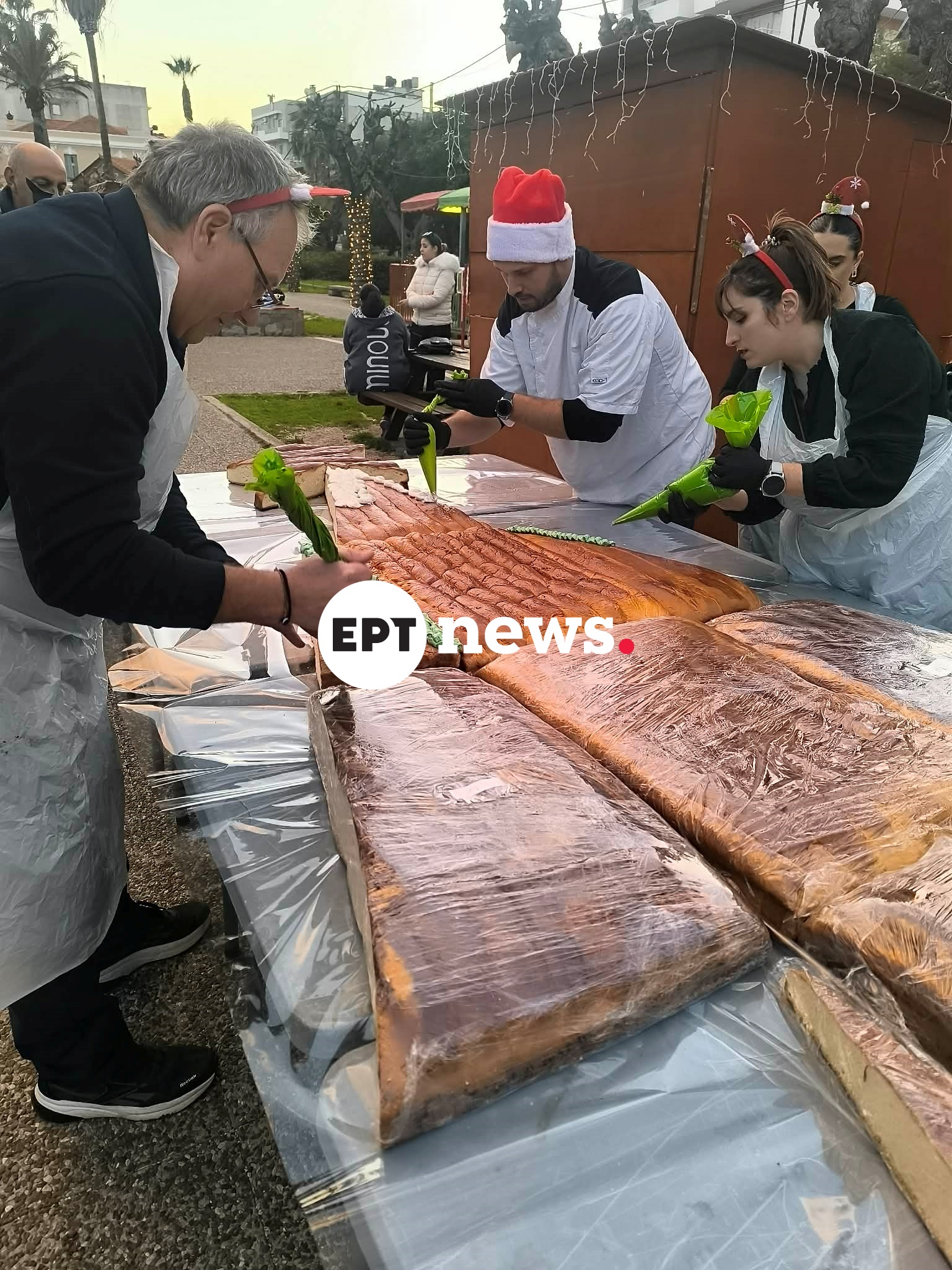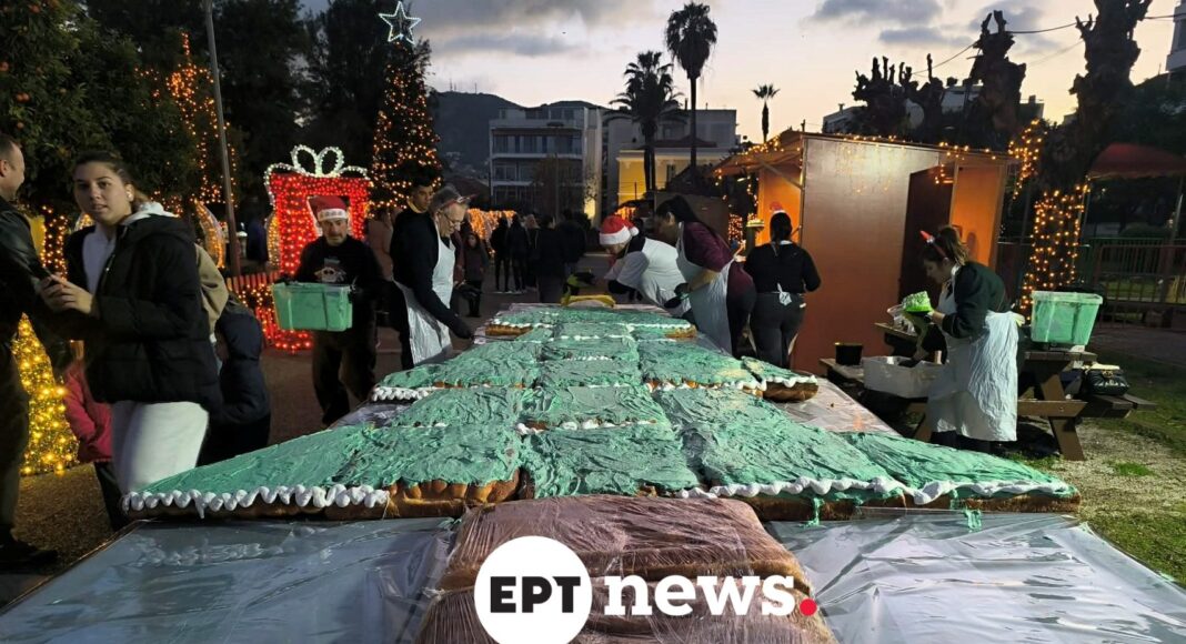 Ένα διαφορετικό χριστουγεννιάτικο δέντρο από τσουρέκια, βάρους 100 κιλών και ύψους 7 μέτρων στήθηκε στο Χριστουγεννιάτικο Χωριό του Δήμου Μυτιλήνης, στο πάρκο της Αγίας Ειρήνης, ενθουσιάζοντας μικρούς και μεγάλους.