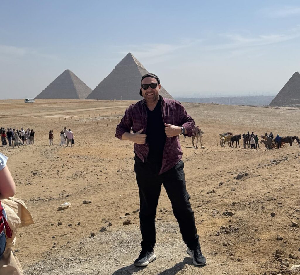 Οι Πυραμίδες της Γκίζας στέκονταν αγέρωχες κάτω από τον ήλιο, σχεδόν εξωπραγματικές. Στάθηκα μπροστά στη Μεγάλη Πυραμίδα του Χέοπα κι ένιωσα το χρόνο να διαλύεται.