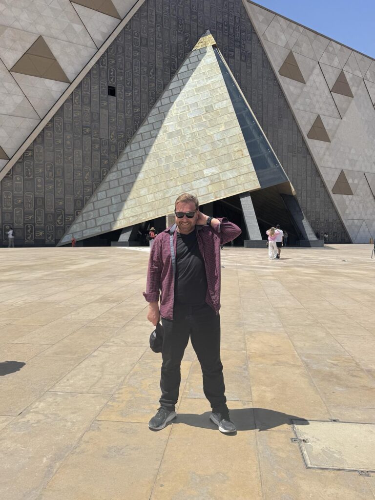 Δεν θα μπορούσα να φύγω από την πόλη χωρίς να επισκεφθώ το GEM — το Grand Egyptian Museum. Ένα κτίριο φουτουριστικό, με έκταση που κόβει την ανάσα και εκθέματα που σε κάνουν να θες να μείνεις μέσα για μέρες. Αν και η πτέρυγα του Τουταγχαμών δεν έχει ανοίξει ακόμη για το κοινό, το υπόλοιπο μουσείο προσφέρει ήδη μια συγκλονιστική εμπειρία. Η αρχιτεκτονική του, η αίσθηση του χώρου, η προετοιμασία για κάτι μεγάλο — όλα συντελούν σε μια ατμόσφαιρα προσμονής και θαυμασμού.