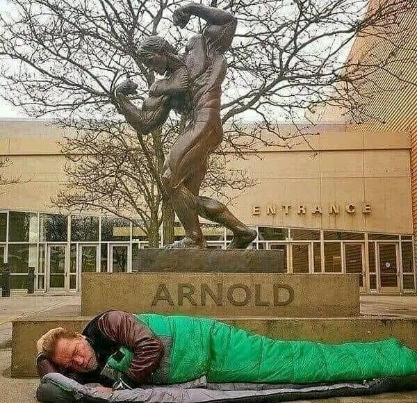 Ο διάσημος ηθοποιός Arnold Schwarzenegger ανέβασε μια φωτογραφία του να κοιμάται στο δρόμο, κάτω από το διάσημο μπρούτζινο άγαλμά του, και έγραψε με θλίψη: